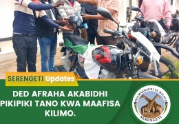 Mkurugenzi Mtendaji wa Halmashauri ya Wilaya ya Serengeti Ndg. Afraha N. Hassan akikabidhi pikipiki tano kwa maafisa kilimo na Mifugo zilizotolewa na Wizara ya Kilimo, Mifugo na Uvuvi ikiwa ni jit...